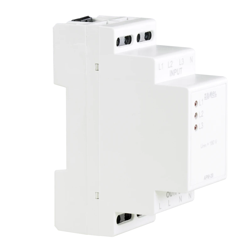 APM-20 to urządzenie, którego głównym zadaniem jest zachowanie ciągłości zasilania odbiornika jednofazowego w momencie zaniku fazy lub spadku wartości skutecznej napięcia poniżej normy.